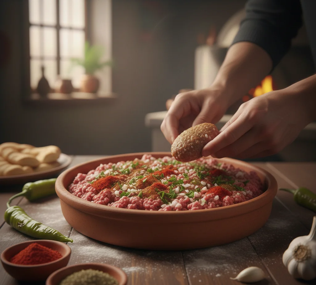 (10 min) Astuce: La kôfte doit être bien parfumée – le cumin est vraiment important !