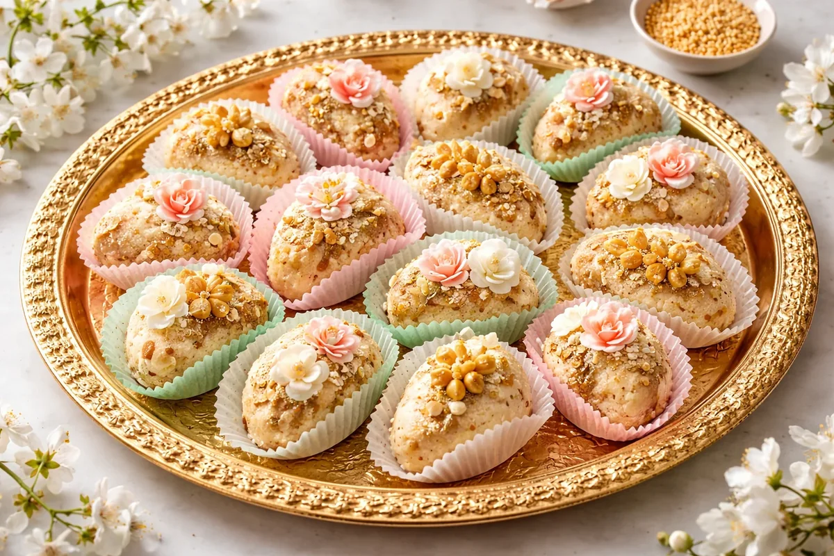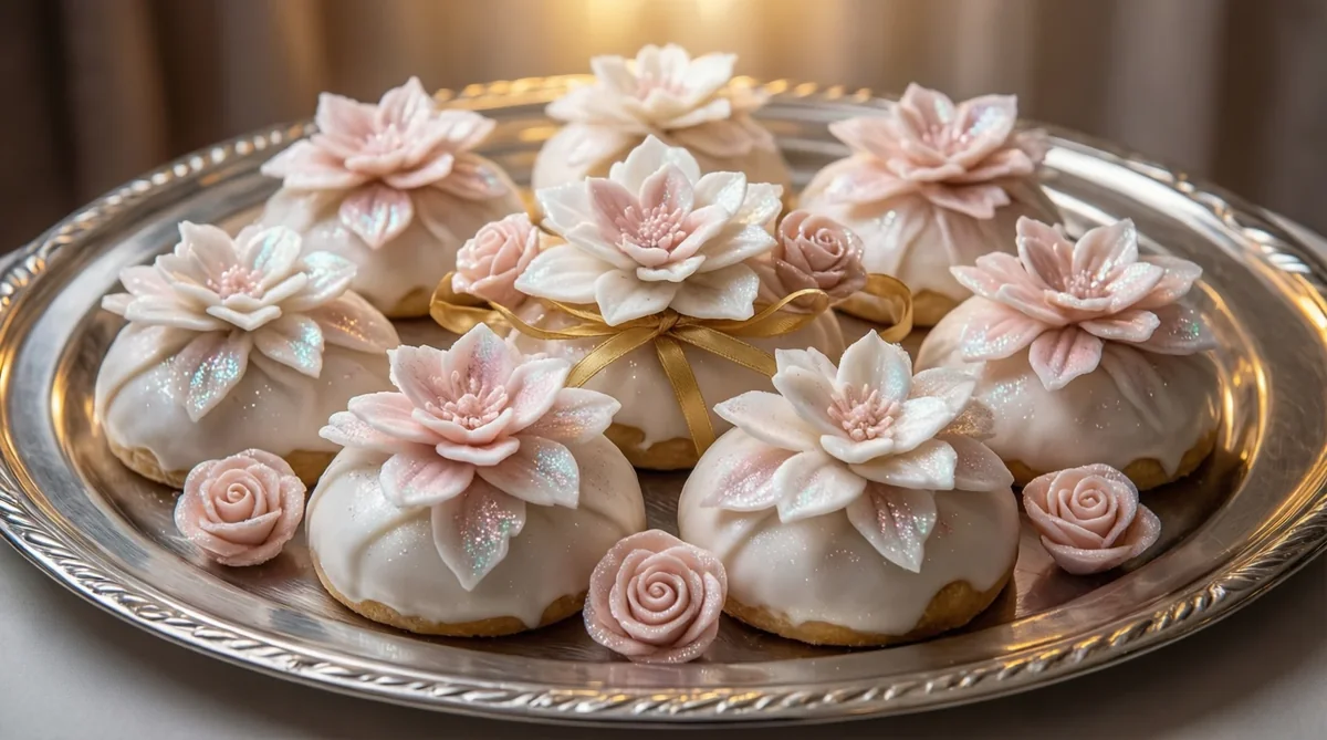 🌸 (10 min) Astuce: Découpe avec un mouvement de scie délicat plutôt que d'appuyer fort, sinon tu écrases tout. - Étape 5:Pour la décoration finale, badigeonne légèrement le dessus de chaque Kefta avec du brillant alimentaire au pinceau fin pour l'effet glacé, colle une petite fleur en pâte à sucre sur chaque pièce, ajoute éventuellement une touche de poudre d'or pour les grandes occasions, et voilà tes Kefta gateaux orientaux prêtes !