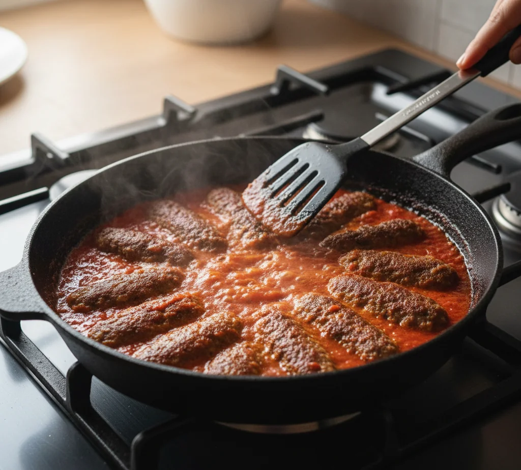- La cuisson requiert patience et délicatesse : saisissez d'abord les boulettes pour créer une croûte protectrice, puis laissez-les mijoter doucement dans la sauce. Cette double cuisson assure une viande cuite à cœur sans assécher les boulettes, tout en permettant aux saveurs de la sauce de pénétrer harmonieusement.